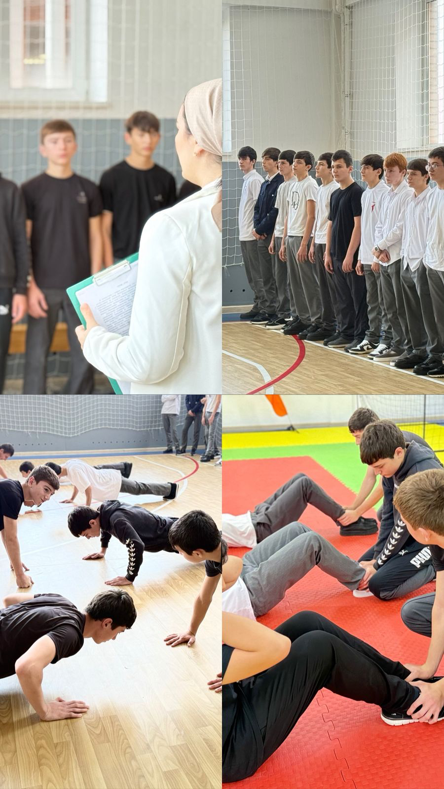 Практическая часть прошла непосредственно в спортивном зале, под руководством Мансура Мусаевича учащиеся выполнили упражнения, соответствующие требованиям для каждой возрастной группы. Все испытания проводились с соблюдением требований безопасности и педагогического сопровождения.